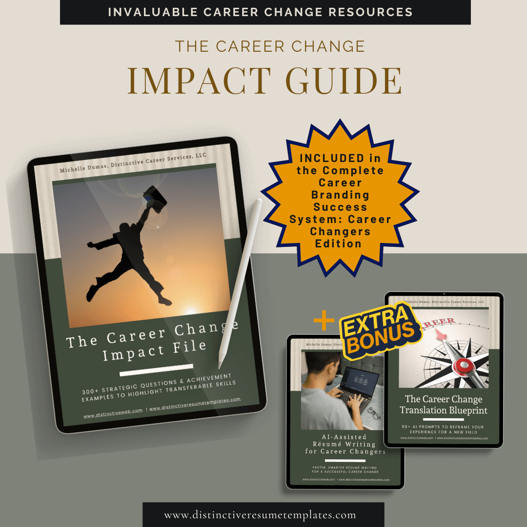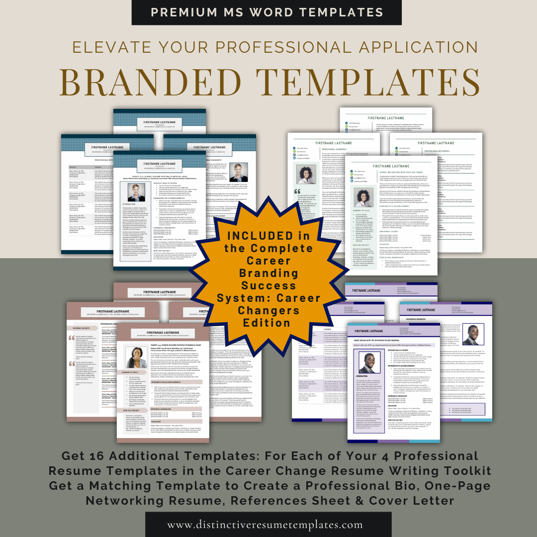 Get ALL THREE career-change essentials in one complete system. This bundle combines the full Career Change Resume Writing Toolkit, the Career Change Impact Guide, and the full Career Change Coordinated Templates Collection—giving you every guide, worksheet, prompt, and template you need to create a fully branded resume, bio, cover letter, references sheet, and more. A complete, step-by-step portfolio-building system designed specifically for career changers.