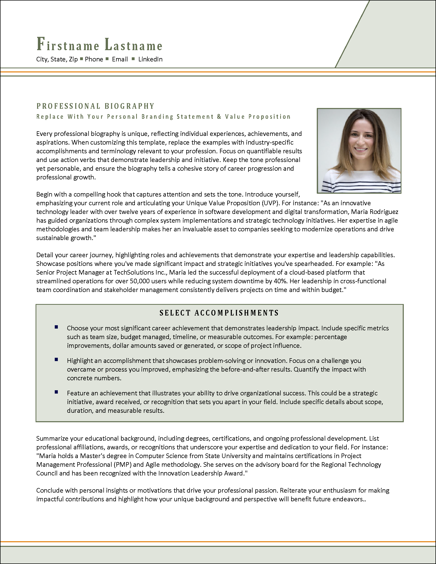 Coordinating Career Booster biography, cover letter, and references templates are available as separate purchases. Each one mirrors the strategic, accomplishment-focused aesthetic of the Career Booster resume, allowing you to maintain a cohesive, results-driven brand across all your career documents.