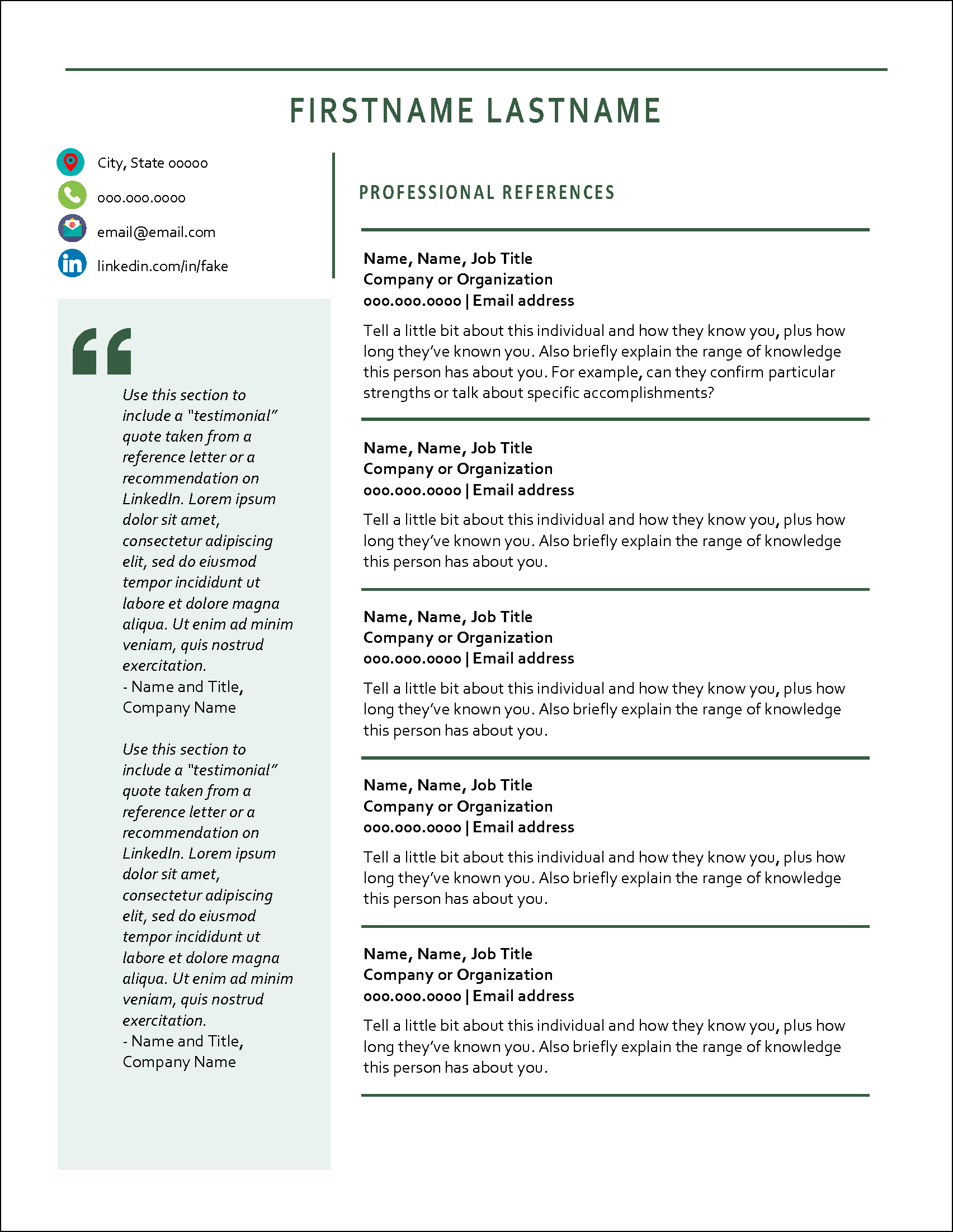 The Professional References Template ensures your references are presented with the same polish and professionalism as your other career documents. Its clean, coordinated design maintains your personal branding while providing all necessary information in a clear, organized format.