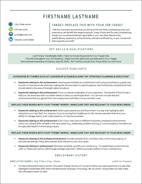 The Cover Letter Template helps you craft compelling introductions that address the challenge of career transition head-on. It provides strategic guidance for explaining your career change motivation and connecting your past experience to your future goals.