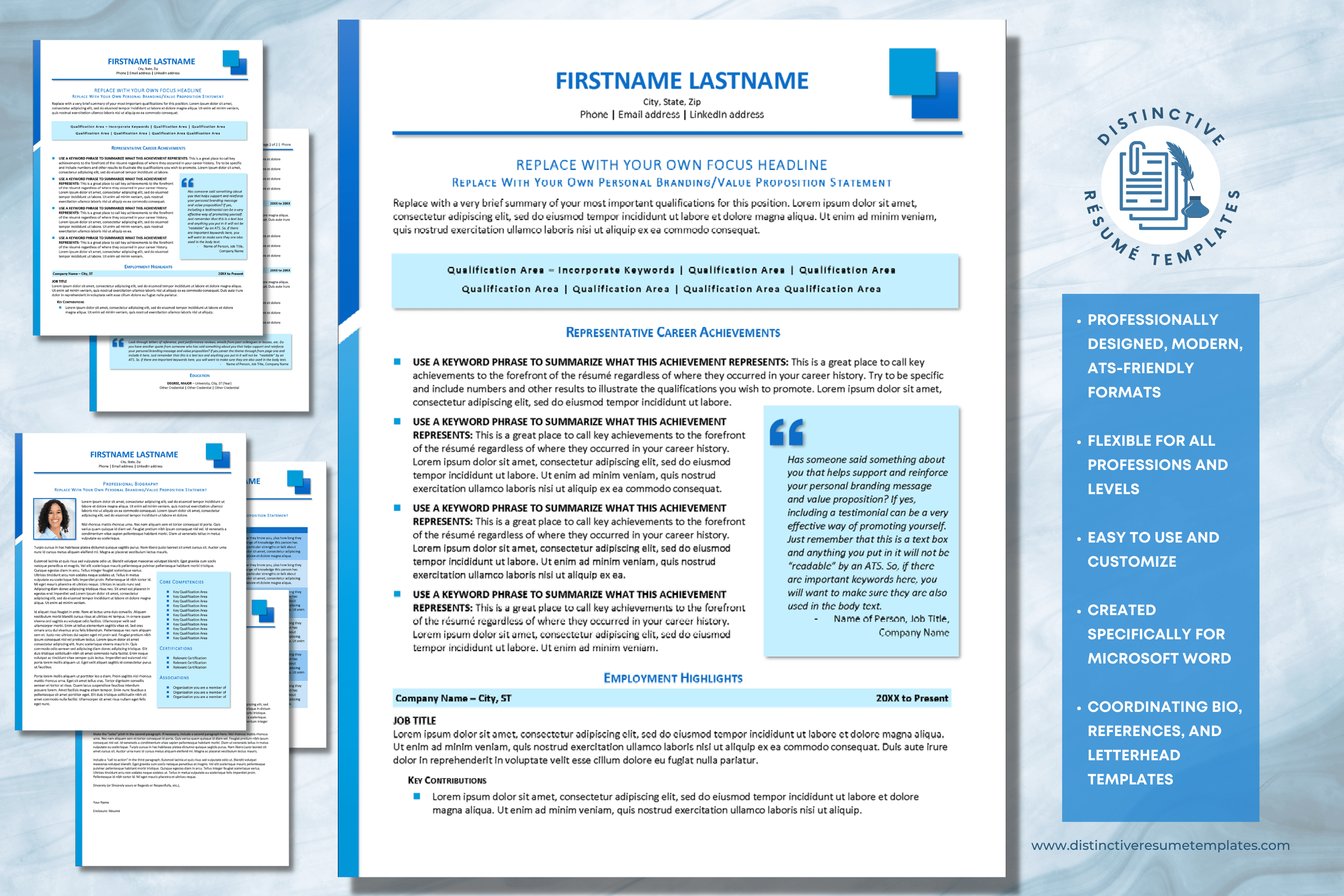 ATS-FRIENDLY...EASY TO USE & CUSTOMIZE...EYE-CATCHING, MODERN FORMATS
