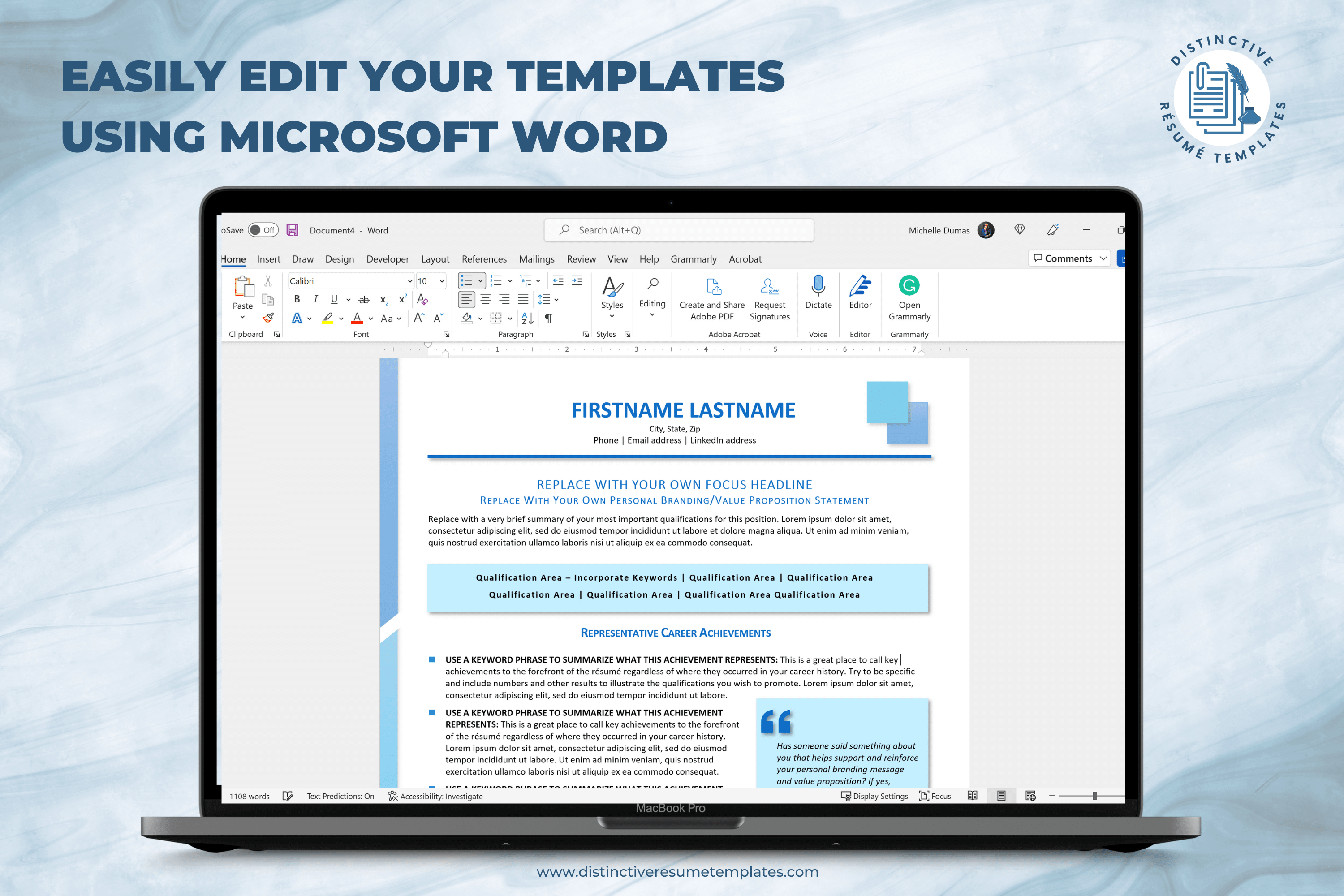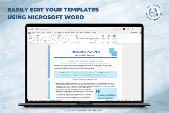 I love Michelle’s resume templates! The designs are eye-catching and easy to use. I highly recommend these templates for anyone who finds that designing a creative, contemporary formatted resume is a challenge. They’re a huge time-saver.