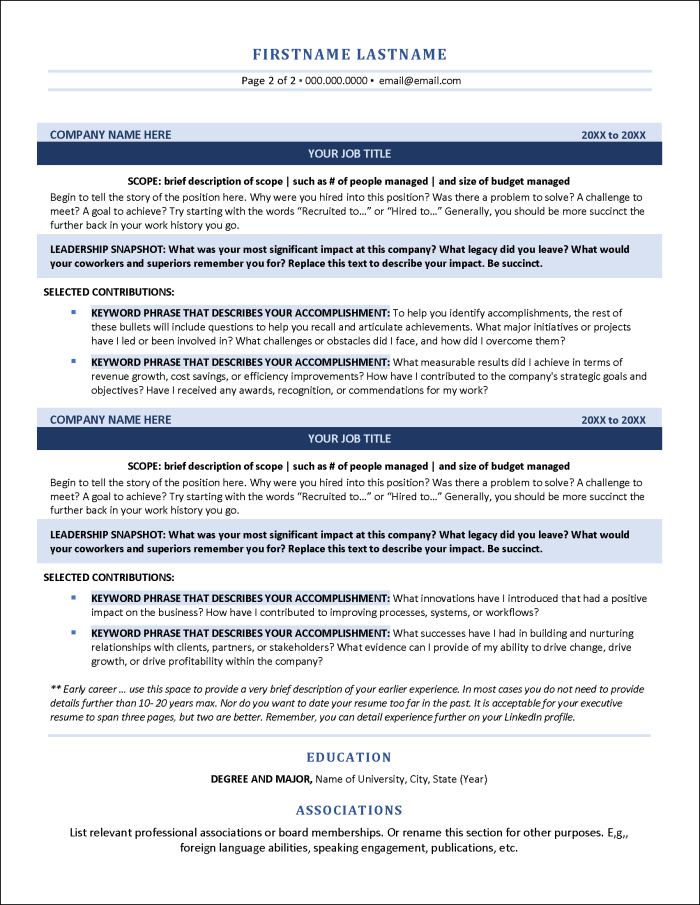 Whether you’re updating an existing resume or starting fresh, this traditional executive resume template helps you create a document that feels authentic, confident, and professionally grounded.